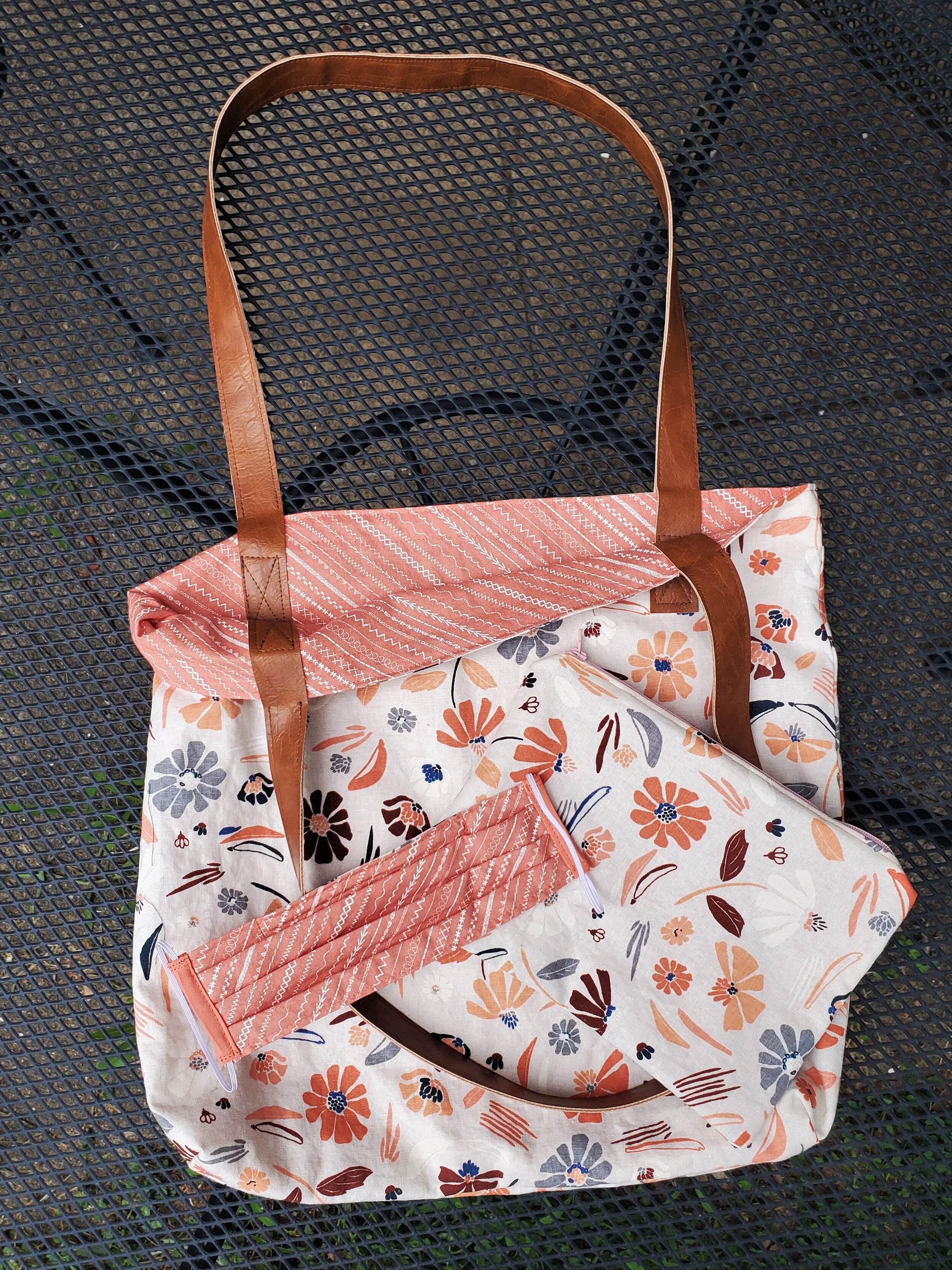 TOTE BAGS. $25. These gorgeous, REVERSIBLE tote bags come in 4 colorways. Each also can be combined with matching zipper pouches ($12) or matching reversible face masks ($10). Featuring faux leather handles, these are sure to be your new go-to bag to hop around top. Additional pictures can be found on my Instagram.